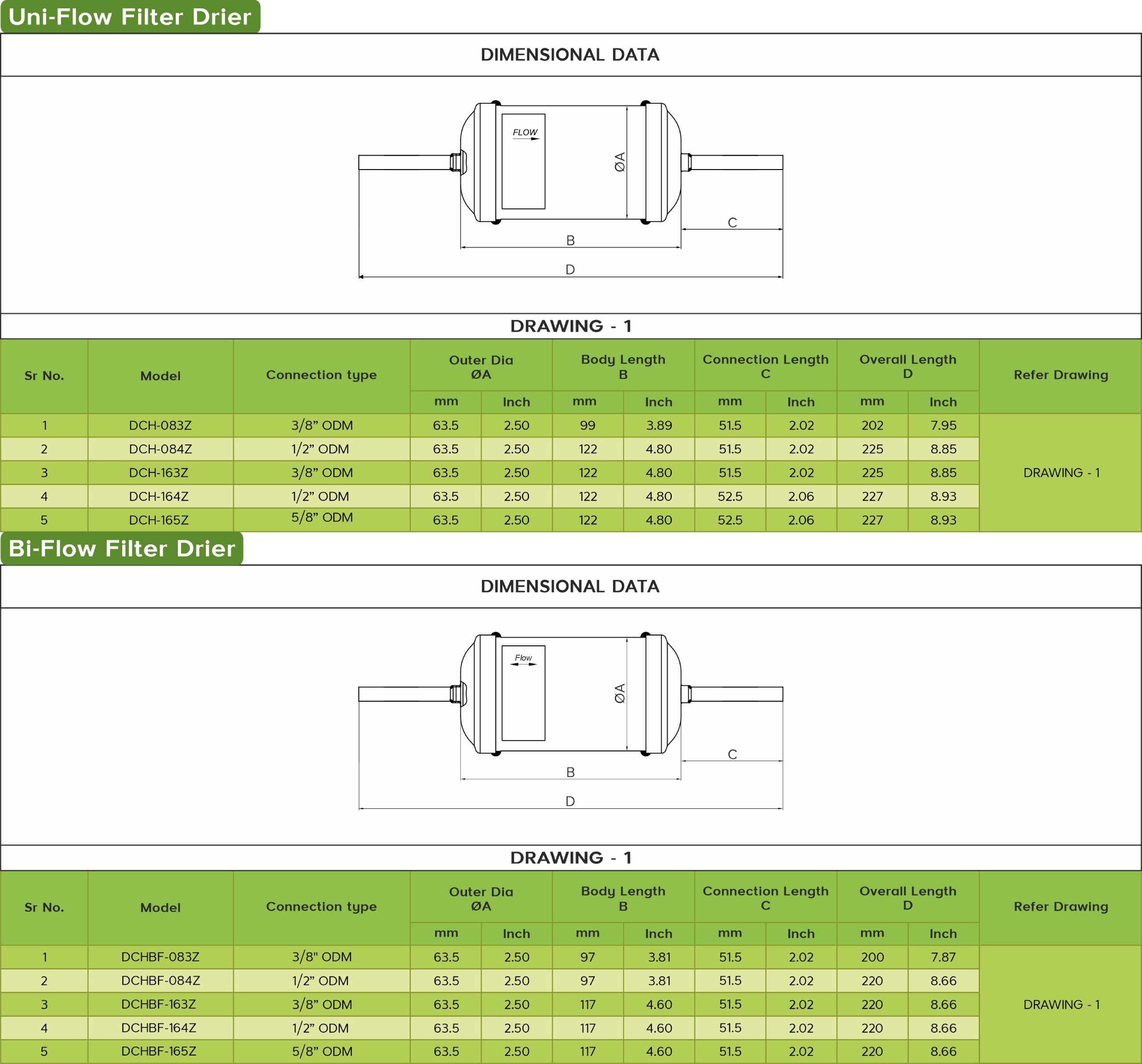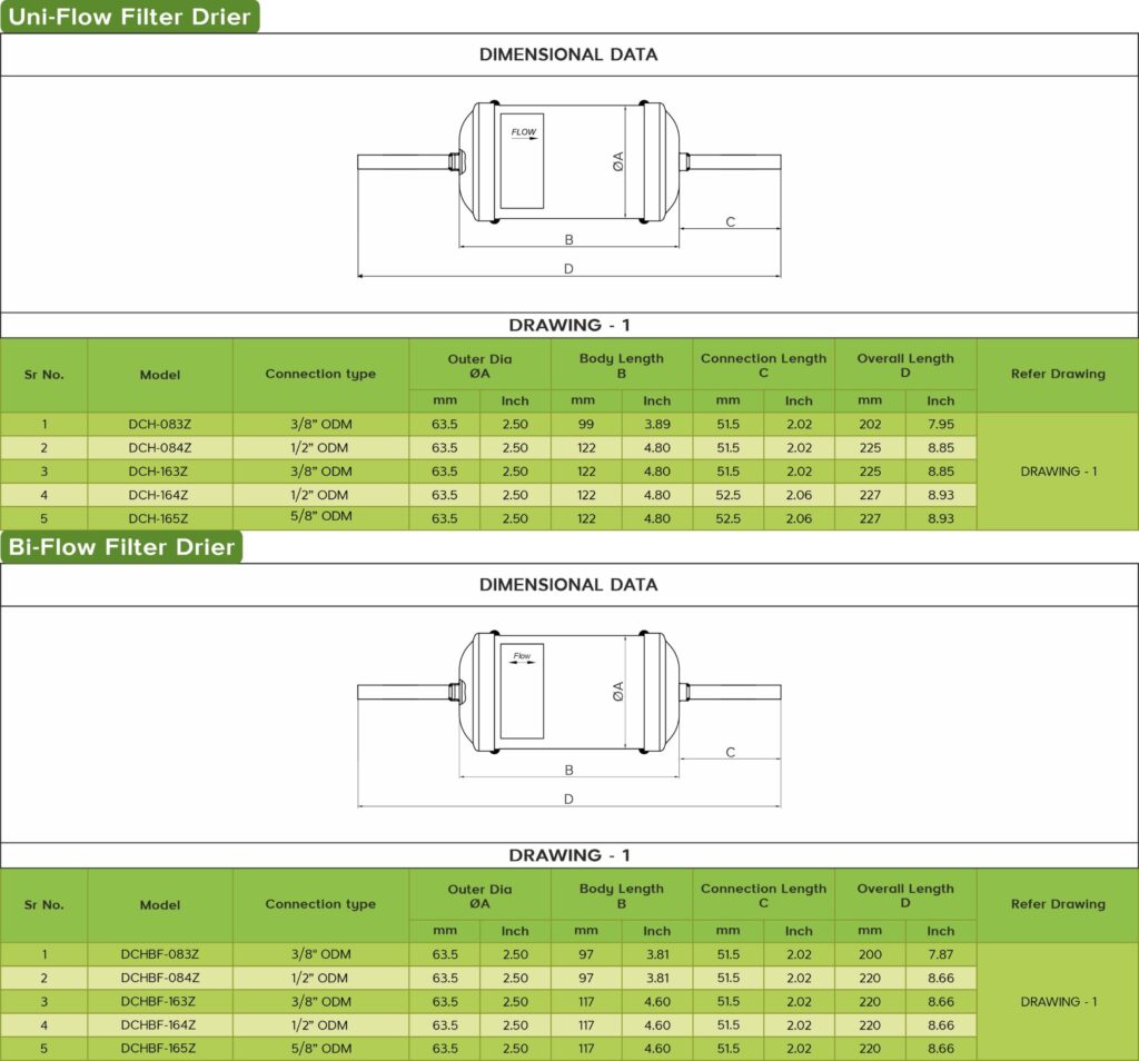 Dry All manufacturers complete range of Filter Driers to suit Press/Push Fittings available in the HVAC&R Industry today. These fittings require the copper connection sizes of the driers to be in ODM sizes and the same are available on a complete range of Dry All Filter Driers. Some models are available off the shelf and some can be made available as per order.