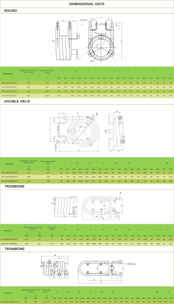 Ans: A coaxial heat exchanger has a “tube in tube” design. The outer tube is typically made of steel or copper, while the inner tube can be titanium, copper, or copper-nickel. The inner tube’s surface often has spiral grooves to enhance heat transfer.