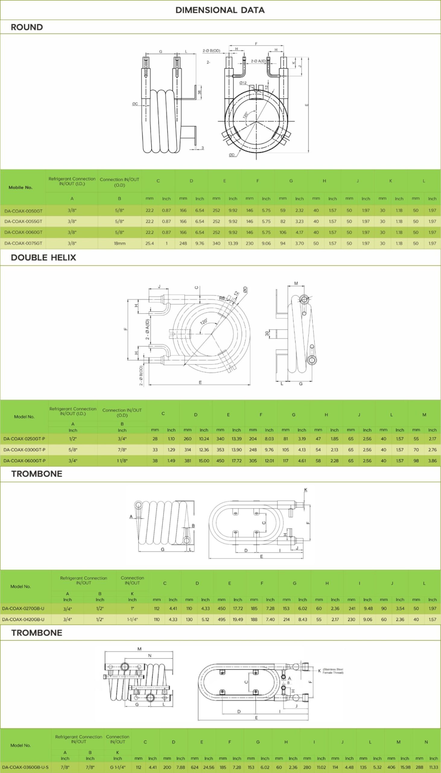 Ans: We offer Round, Trombone, and Double Helix types of coaxial heat exchangers.