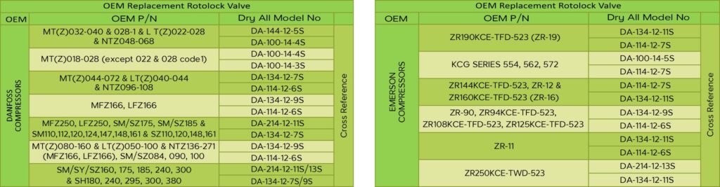 Rotolock valves are designed for installation of compressor and receivers in commercial AC&R system which helps to reduce service repair time in case of compressor failure and during maintenance shutdown periods. Rotolock Valve designs provide quick disconnection and isolation of low and high side of refrigeration system during maintenance periods.