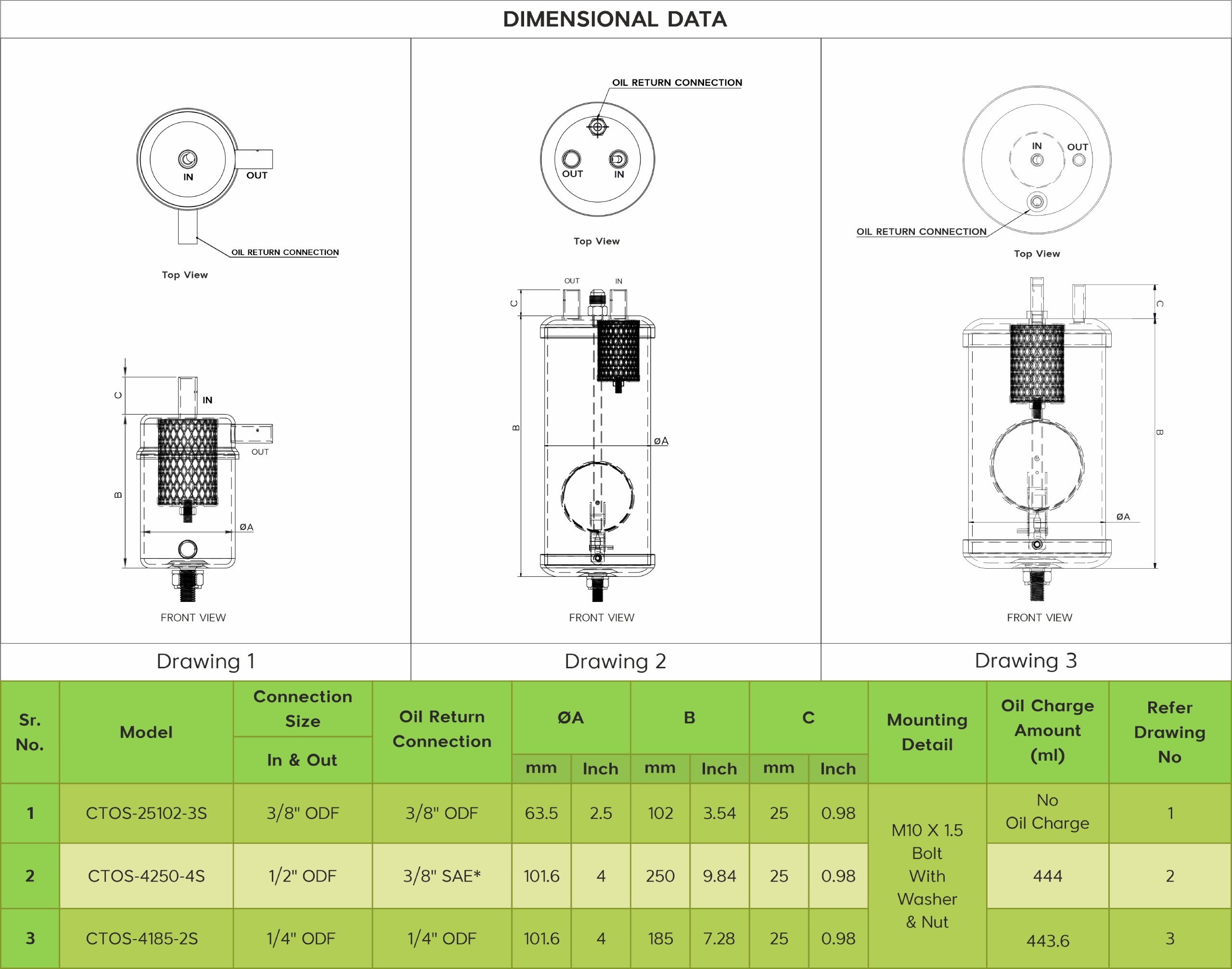Let us delve into the pivotal role of oil separators within HVAC&R systems. These essential components ensure the smooth operation of these systems by efficiently extracting oil from discharged refrigerants, thus optimizing oil return to compressors. At the forefront of this technology are the Dry All Coalescent Oil Separators, integral to the CTOS Series. Distinguished by their utilization of cutting-edge advancements, these separators boast unparalleled efficacy in oil separation. By harnessing a high-purity borosilicate glass fibre filter media, they effortlessly capture even the most minuscule oil molecules. Through the strategic promotion of collisions and subsequent aggregation, these minute molecules coalesce into larger droplets, naturally guiding the oil back to the compressor through the force of gravity. This innovative methodology yields remarkable oil separation efficiencies ranging from 95% to 99%, a stark contrast to conventional oil separators whose efficiencies hover between 75% and 85%.